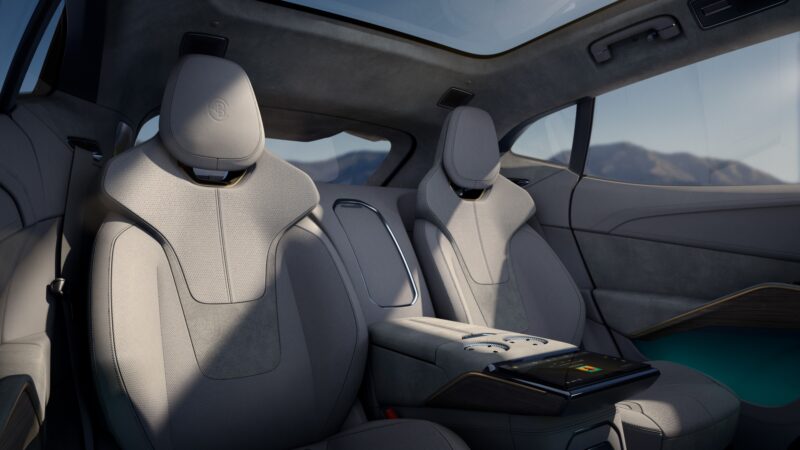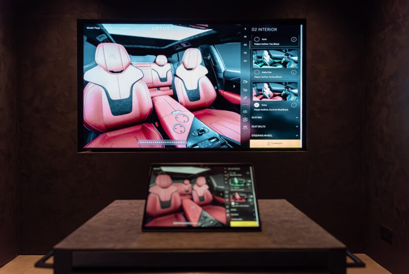 Untuk ruang kabin, secara standard Lotus Eletre didatangkan dengan sistem audio premium KEF 15 pembesar suara, skrin paparan head-up 29 inci, kawalan iklim empat zon serta kemasan Jasper berserta fabrik LotusWear Performance.