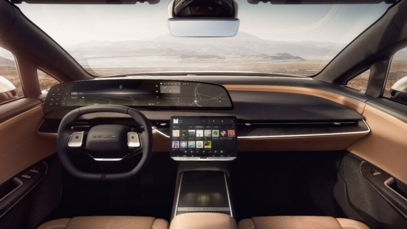 Di konsol tengah, terdapat skrin infotainmen Pilot Panel dengan bar sentuhan untuk fungsi-fungsi utama. Ciri lain di sini termasuklah panel gelungsur kaca untuk ruang simpanan barang, pad pengecas tanpa-wayar, tiga soket 120 volt dalam kabin, dan enam port USB-C.