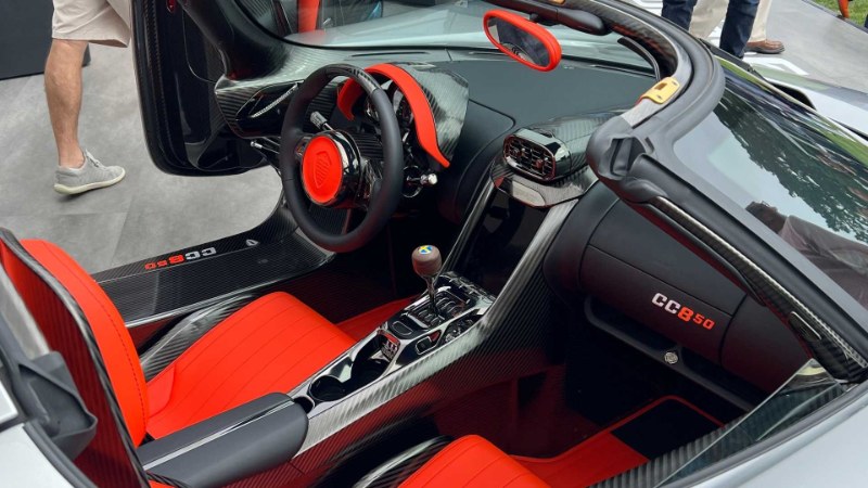 Di dalam kabin, tombol gearnya menampilkan rekaan gated shifter tetapi sedikit berbeza dari Jesko yang merupakan transmisi automatik sequential. Bagi CC850, terdapat pedal klac, bermakna kotak gear ini perlu anda tukar sendiri.