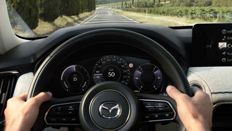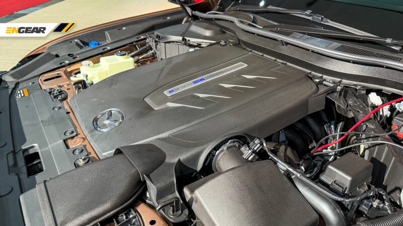 Mazda CX-80 dikuasakan oleh nadi Skyactiv-G 2.5 liter dengan bantuan sistem plug-in hybrid dan pacuan semua roda (AWD).