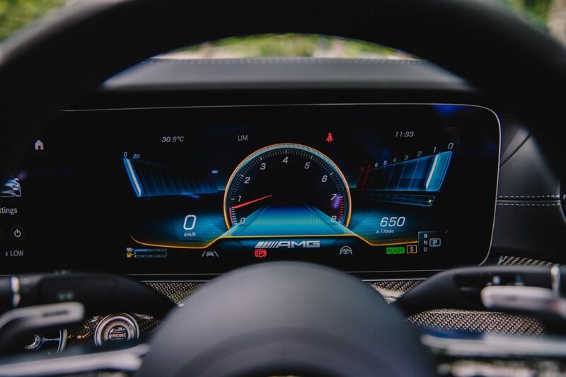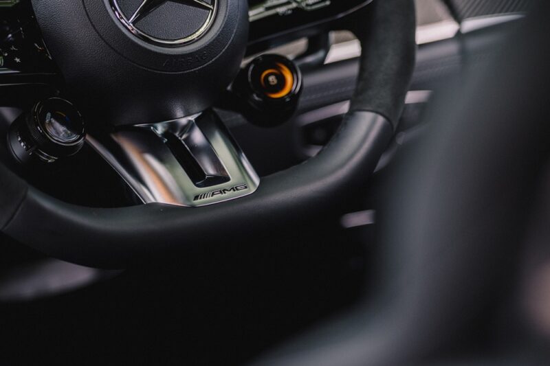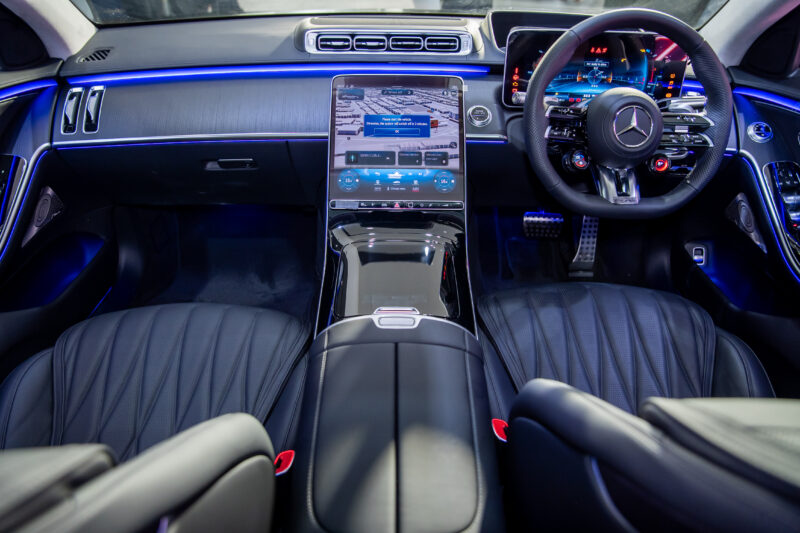 Ruang kabin pula menampilkan skrin berkembar 10.25 inci dengan paparan spesifik AMG, roda stereng AMG Performance balutan Nappa/mikrofiber MICROCUT, serta sistem infohibur MBUX yang lebih berkuasa.