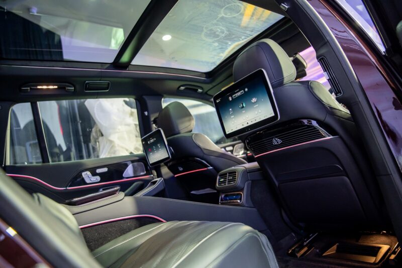 Di dalam, terdapat sistem infohibur MBUX yang membawakan paparan dalam rekaan baharu, serta sistem hiburan tempat duduk belakang (MBUX High-End Rear Seat Entertainment System) yang merangkumi dua skrin sentuh 11.6 inci untuk menonton filem atau melayari Internet.
