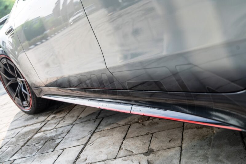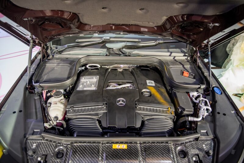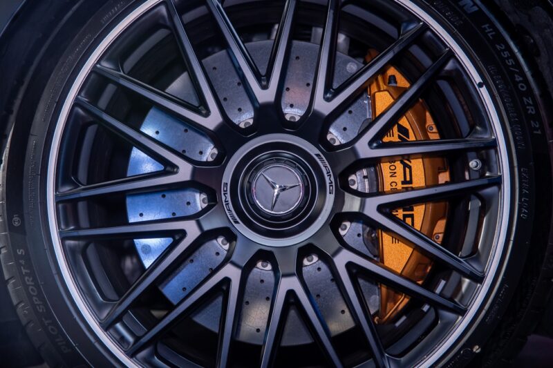 Turut disertakan adalah sistem suspensi udara dengan peredam adaptif yang dikawal secara elektronik, serta sistem brek AMG lengkap dengan angkup brek berwarna merah.