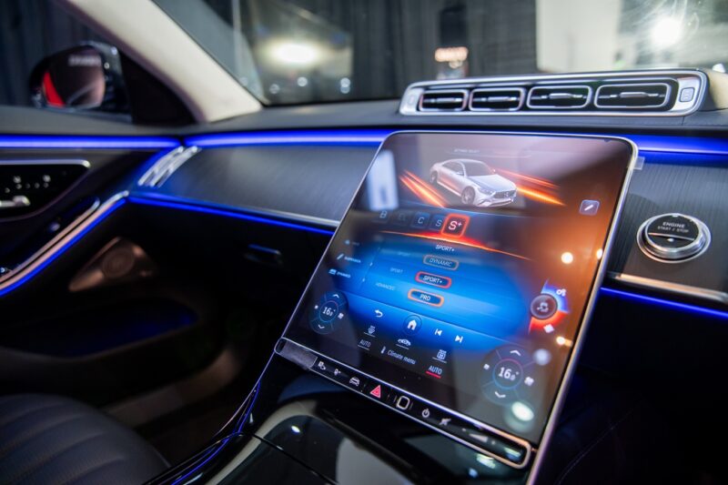 Sistem infohibur MBUX terdiri daripada panel instrumen digital berukuran 12.3 inci, skrin sentuh 11.9 inci yang dihalakan 6 darjah ke arah pemandu dan pengecas wayarles.