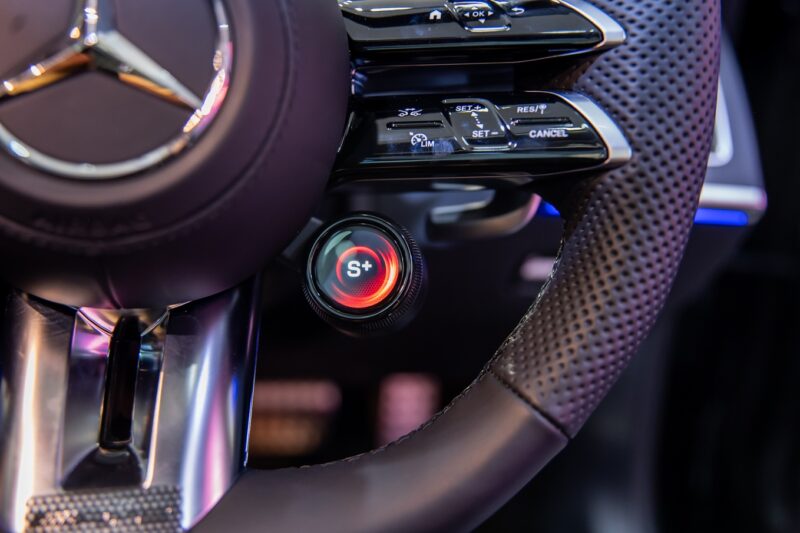 Seperti EQS, ia juga didatangkan dengan lampu Digital Light dengan Adaptive Highbeam Assist Plus, dan kit badan AMG Line namun dengan rim yang lebih kecil bersaiz 19 inci.