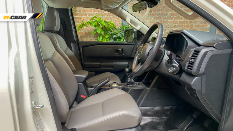 Varian asas hanya dilengkapi dengan kemasan hitam pada bampar, diikuti tempat duduk balutan fabrik serta kamera undur.