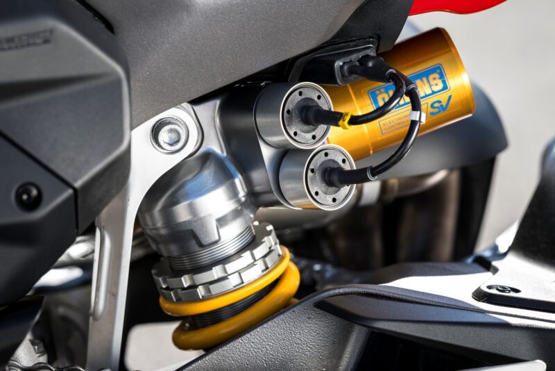 Panigale V4 S pula mendapat sistem Ducati Electronic Suspension (DES) 3.0 yang merangkumi fork Öhlins NPX-30, penyerap hentak Öhlins TTX36 dan peredam stereng Öhlins.