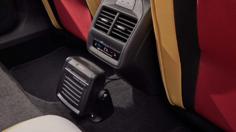 Tempat duduk baris kedua kini hanya boleh memuatkan seorang penumpang sahaja, memandangkan bahagian kiri telah dimuatkan dengan kotak penyejuk dan kit pembesar suara.