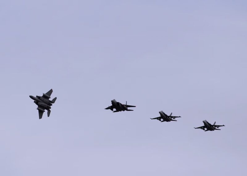 Dalam video di bawah, anda dapat lihat dengan jelas pesawat-pesawat pejuang dalam formasi sebelum berpecah mendarat mengikut giliran. Formasi ini adalah dari Eksesais PARADISE antara Tentera Udara Diraja Malaysia (TUDM) dengan Tentera Udara Diraja Australia (RAAF).