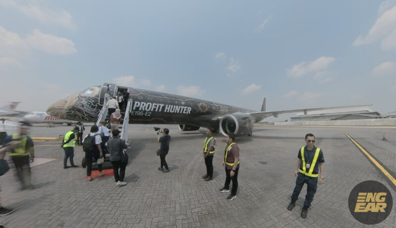 Penerbangan demo yang bertempat di Lapangan Terbang Sultan Abdul Aziz Shah itu dijalankan dengan kerjasama Embraer bertujuan mempertontonkan ciri unik dan canggih pada E192-E2 Tech Lion. Ia juga serentak dengan persediaan SKS Airways yang akan mengoperasikan jet ini pada 2024.