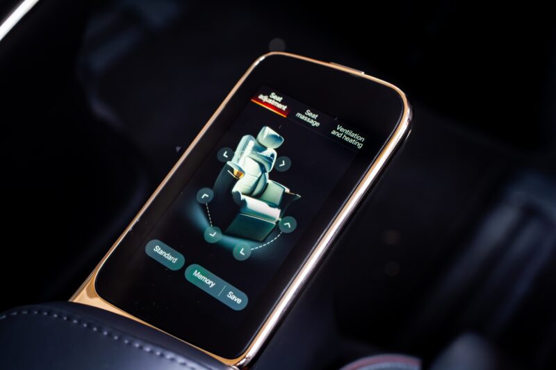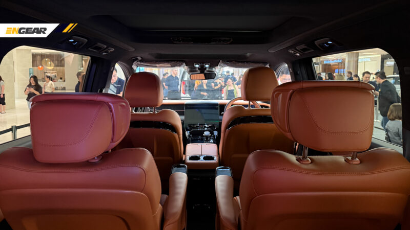 Penumpang baris kedua pula boleh menikmati tempat duduk Graviti Sifar, lengkap dengan fungsi pengudaraan, urut, larasan enam-tahap, serta skrin kecil untuk kawalan penting.