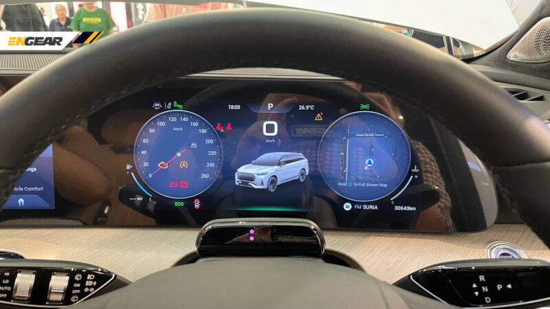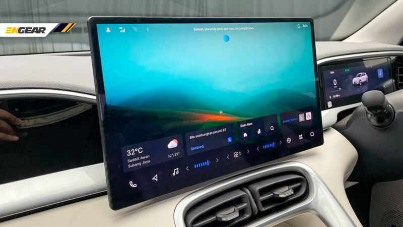 Ia turut dilengkapi dengan skrin paparan sebesar 15.4 inci lengkap dengan sokongan Apple CarPlay dan Android Auto, sokongan kamera casis lutsinar 540 darjah, serta tombol khas untuk penukaran mod pemanduan.