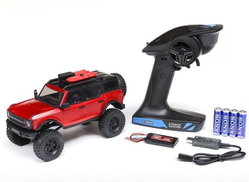 SCX24 Ford Bronco hadir dengan pakej Ready To Run, istilah dunia RC yang bermaksud semuanya lengkap termasuklah radio 2.4GHz, bateri LiPo 2S 7.4V 350mAh, dan pengecaj USB.