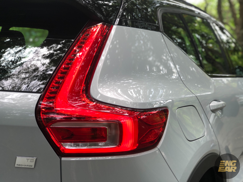 Volvo XC40 masih sebuah SUV yang sangat segak di mata penulis, tetapi C40 jauh lebih ‘segar’. Dengan lampu depan yang lebih sepet, panel gril flat yang menunjukkan ia sebuah EV, bumbung yang menurun ke belakang lebih sporti, spoiler bumbung dan spoiler di hujung but, serta rekaan lampu belakang berbeza yang cukup cantik, membuatkan ia mudah menjadi perhatian orang.