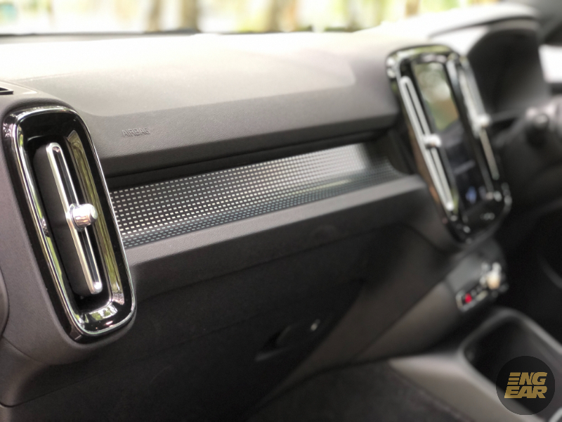 Dari sudut praktikaliti, Volvo XC40 versi elektrik ini membawakan rekaan ruang simpanan pintar di dalam kabin. Anda akan jumpa ruang-ruang simpanan ini untuk botol air, beg gymnasium, telefon pintar, komputer riba, makanan bungkus, malah ruang untuk wayar-wayar pengecaj.