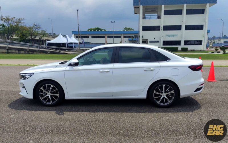 Ini menunjukkan Emgrand lebih besar berbanding sedan-sedan segmen-B yang ada dalam pasaran seperti Proton Persona, Honda City dan Toyota Vios.