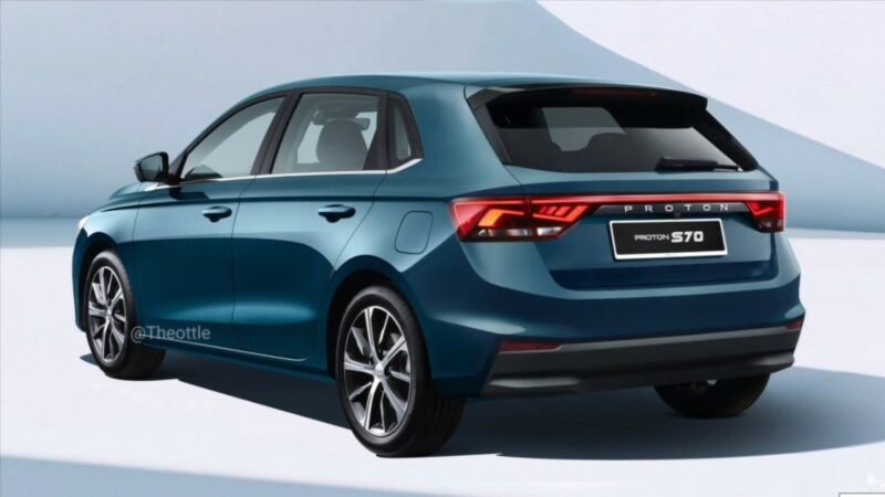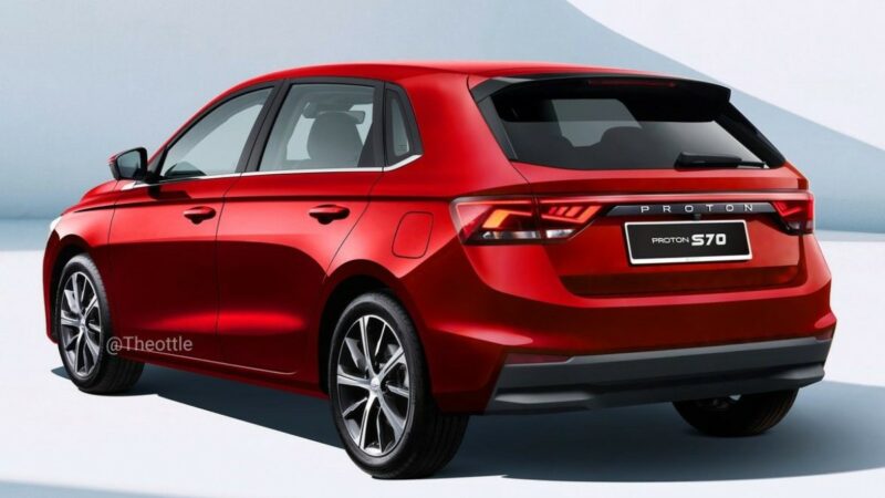 Lakaran Proton S70 hatchback ini dibuat dengan mengambil bahagian belakang Skoda Fabia. Selain dari ‘memotong’ bahagian but dan menurunkan bumbung belakang, S70 hatchback diberikan lampu belakang mirip versi sedan.