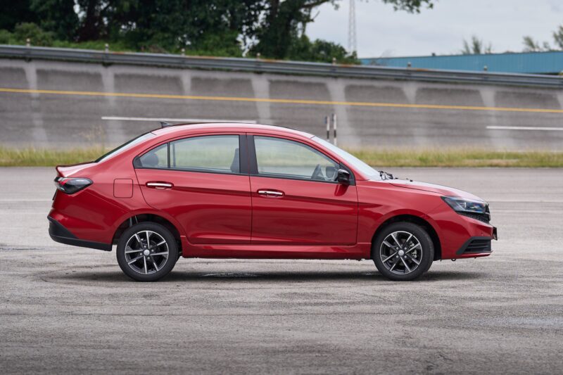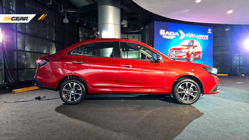 Dari bahagian sisi, Saga tidak menonjolkan perubahan besar melainkan rekaan rim 15 inci serba baharu (14 inci untuk varian Standard).