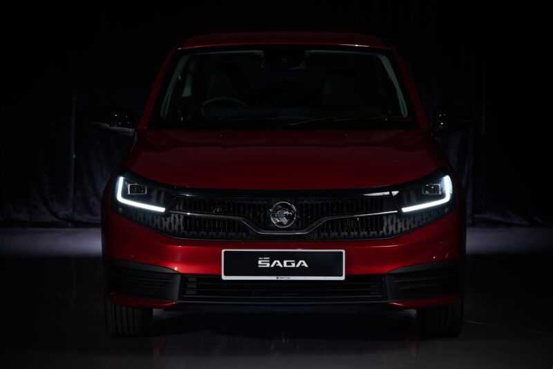 Daripada sudut hadapan, Saga membawakan unit lampu projektor LED lengkap dengan lampu nyalaan siang (DRL) LED, diikuti jeriji dengan elemen sulaman songket dan Ethereal Bow.