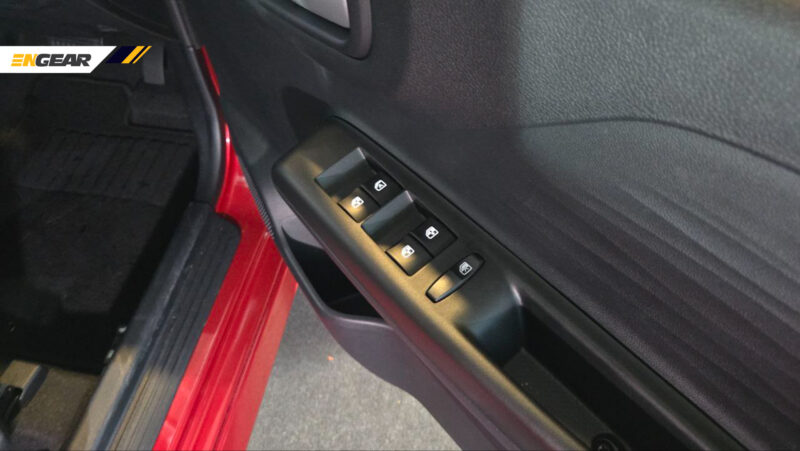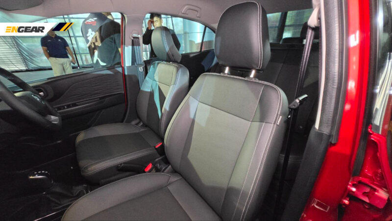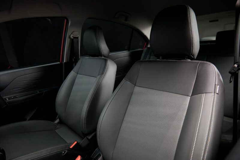 Antara ciri lain termasuklah tempat duduk dua tona balutan leatherette, storan pada konsol tengah, port pengecasan USB Type-A, cangkuk teh tarik, dan tombol kawalan iklim fizikal.