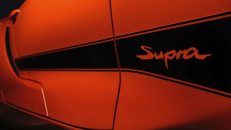 Supra ini juga dilengkapi dengan rim 19-inci hitam, grafik hitam di sepanjang panel pintu, dan spoiler belakang boleh-laras berwarna hitam. Kesemua ini memberikan kontra untuk warna oren pada badannya. Spoiler itu juga suatu peringatan kepada Supra Mk4.
