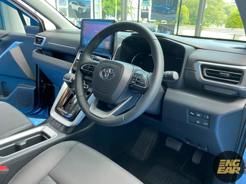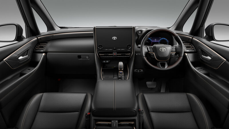 Papan pemuka pula nampak agak ringkas tetapi moden dan menyerupai model Toyota terkini. Terdapat kluster instrumen 7-inci bagi pemandu, dan skrin konsol tengah bersaiz 10.1-inci. Ciri di kabin termasuklah lampu suasana, pengecas tanpa-wayar, bumbung panoramik, but belakang berkuasa, dan pakej Toyota Safety Sense.
