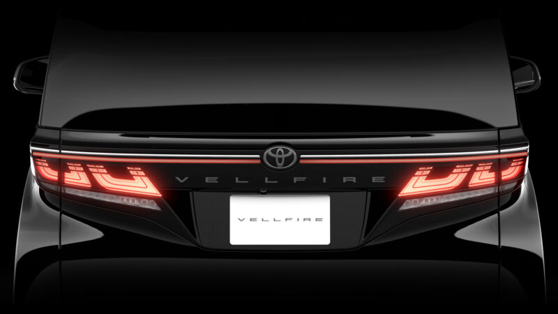 Bentuk lampu belakang tidak jauh berbeza dengan Alphard, namun Vellfire boleh dibezakan dengan kluster berbentuk U dan jalur lampu panjang pada bahagian atas.