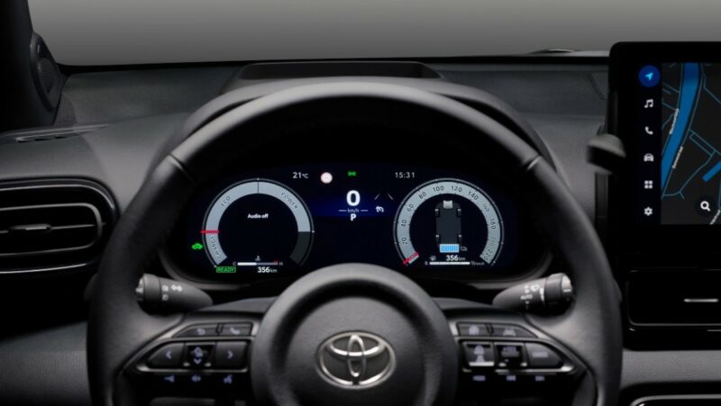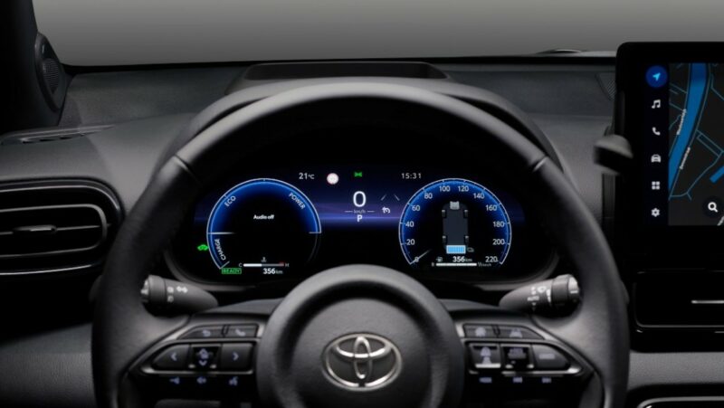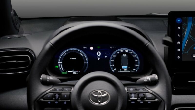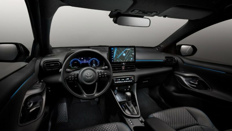 Di bahagian kabin, Toyota Yaris 2023 mendapat kluster instrumen 7- atau 12.3-inci dengan empat jenis paparan (Smart, Casual, Sport dan Tough). Pelik juga kenapa perlu ada Tough. Saiz skrin tengah juga kini lebih besar, sama ada 9- atau 10.5-inci, bergantung kepada varian.
