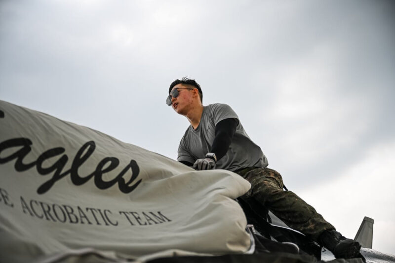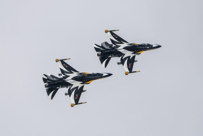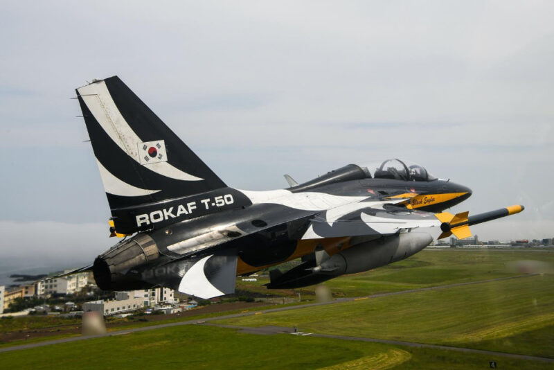 The Black Eagles menerbangkan pesawat KAI T-50 Golden Eagle yang merupakan pesawat latihan supersonic yang digunakan tentera udara Korea Selatan.
