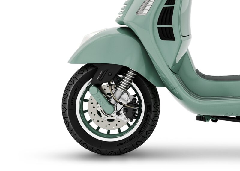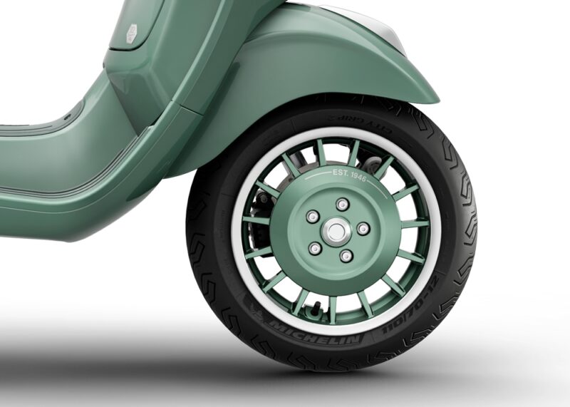 Rekaan rim turut menarik berasaskan Vespa 98 (1946) dan dalam warna sama Verde Pastello dengan struktur tertutup yang diinspirasikan daripada rim logam asal.