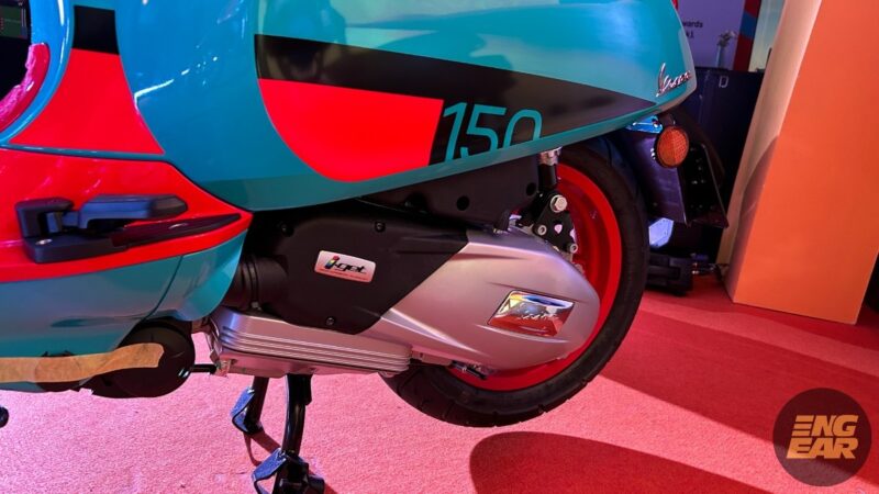 Vespa Primavera 80th dilengkapi tambahan jeriji pendingin di sisi kiri, menyerupai ciri-ciri teknikal model awal.