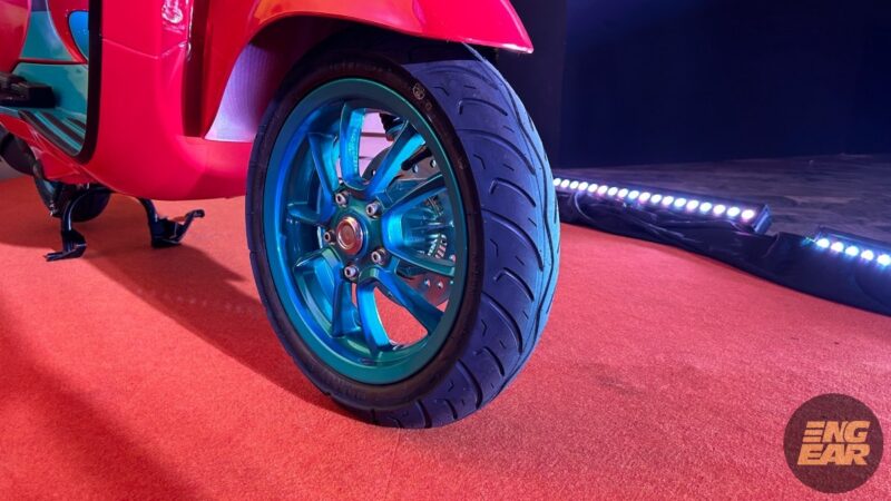 Rekaan rim turut menarik berasaskan Vespa 98 (1946) dan dalam warna sama Verde Pastello dengan struktur tertutup yang diinspirasikan daripada rim logam asal.