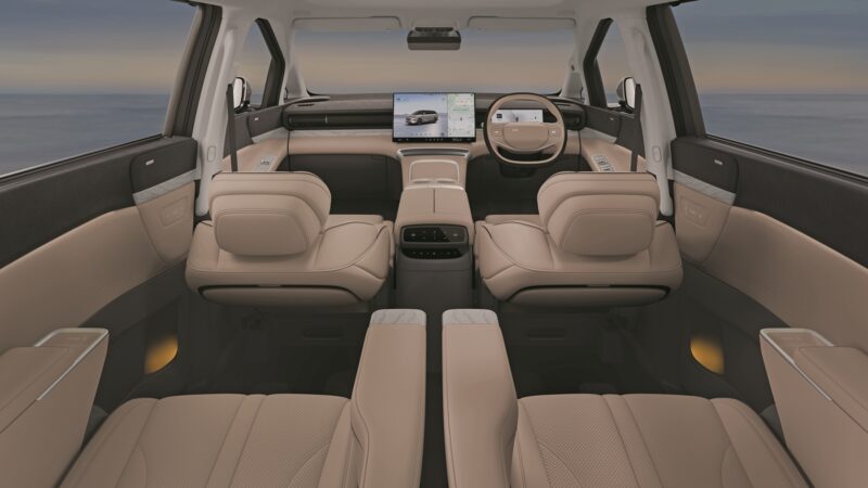 Masuk ke dalam, anda akan disapa oleh kokpit yang diinspirasikan daripada kapal angkasa lepas. Varian Standard Range 2WD Pro dan Long Range 2WD Pro didatangkan dengan upholsteri leatherette, manakala Long Range 2WD Pro Plus pula diberikan kerusi Zero Gravity yang dibaluti upholsteri kulit Nappa.